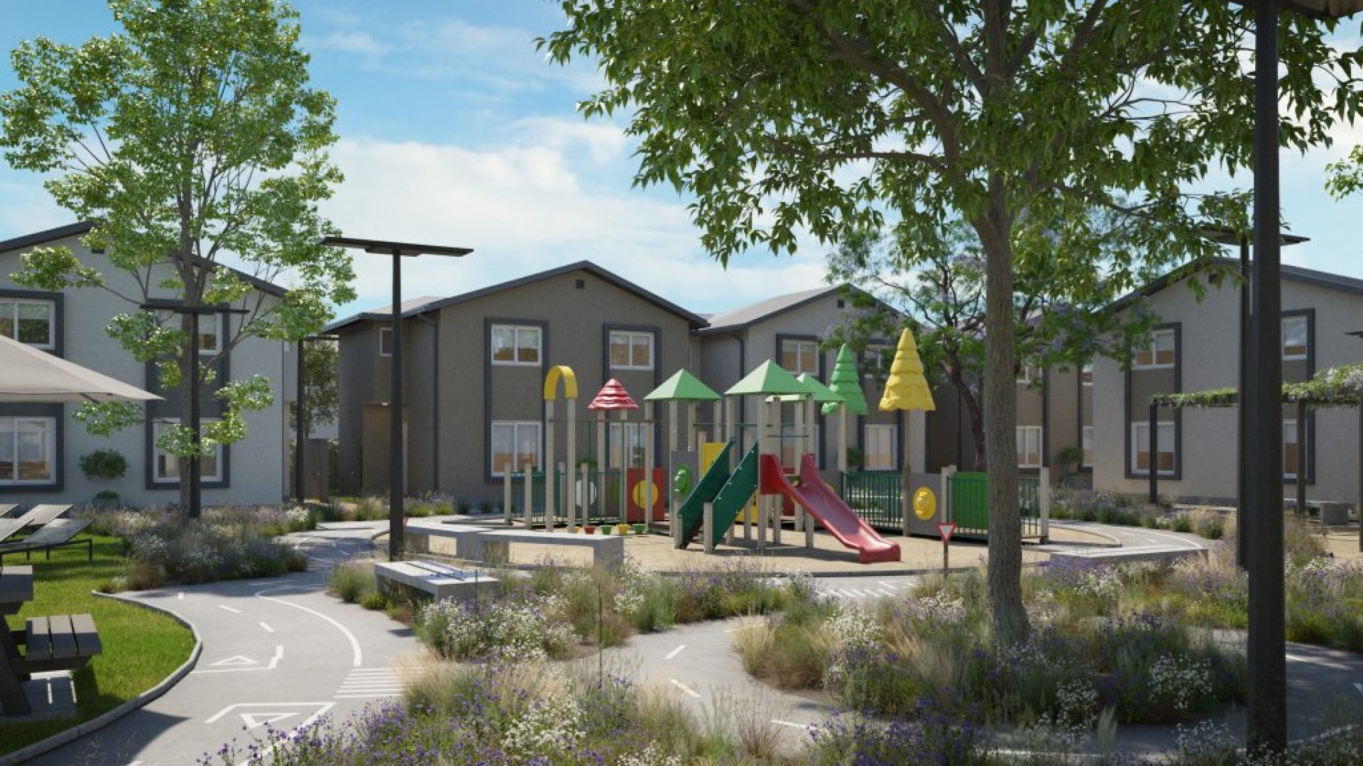 Un entorno familiar con amplios paseos peatonales, perfectos para caminar, relajarse y disfrutar. ¡Aquí los autos se quedan en la calle interior, y tú ganas más espacios para vivir!